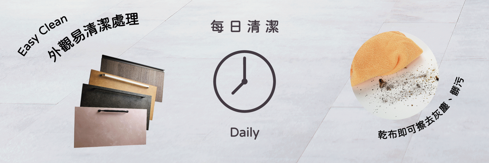 外觀門片都有Easy Clean特殊塗裝處理,髒污或指紋都不易附著,