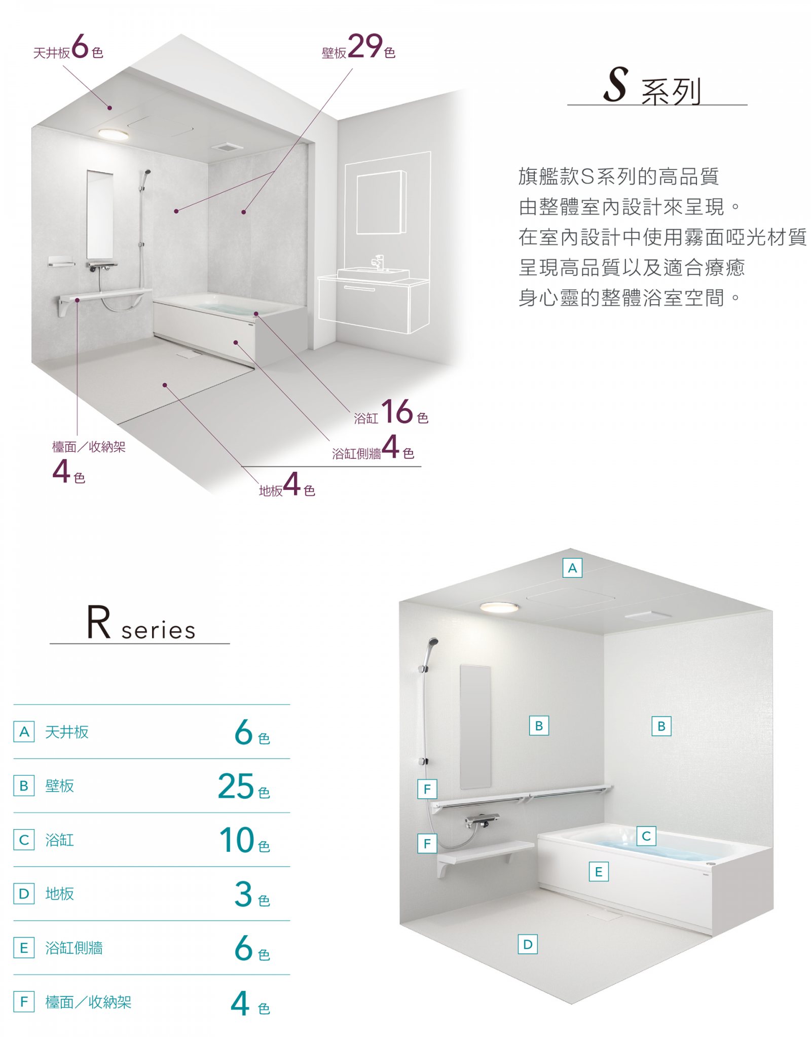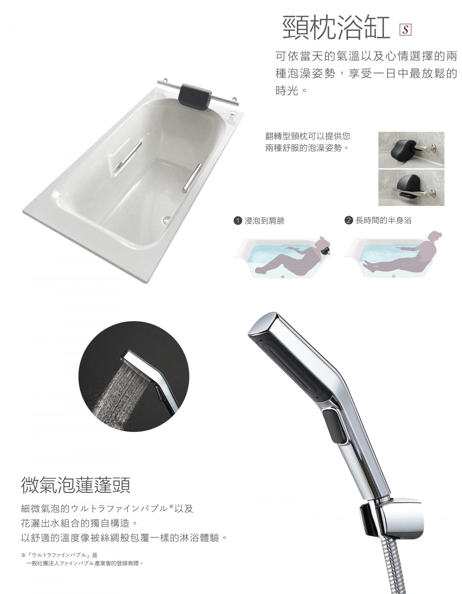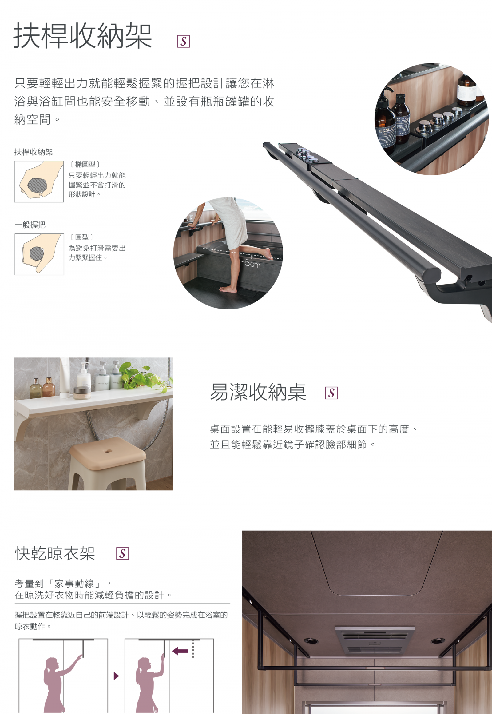 Cleanup Living Bathroom 像在客廳般的放鬆,療癒身心 像在客廳般的放鬆,自由自在 像在客廳般的放鬆,高品質享受 讓您,想回家 享受為自己準備屬於自己,不被任何人打擾的特別時光 為懂得享受的您打造的旗艦款S系列 拋下一切束縛,滿足身心靈 My Sweet Bathroom度過專屬您的奢華時光 Sweet & Suite S系列 享受”喜歡” 精心嚴選的室內裝飾,讓”喜歡”包圍您的沐浴時光 壁板、天井版以及浴缸側板相互搭配整體顏色及材質 選擇您喜愛的功能與配件,只專屬您的整體衛浴就此誕生 .png)