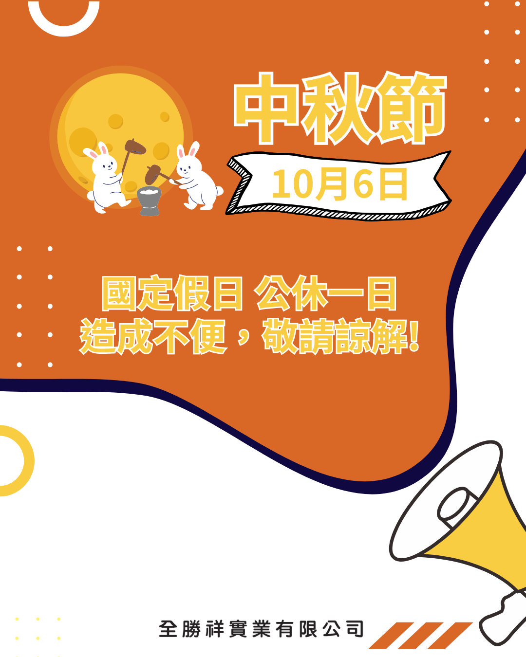 中秋節連假即將來臨,我們假期期間營業時間稍有調整: 10/07(二)即恢復正常營運。 【Cleanup台灣代理商 全勝祥實業有限公司】