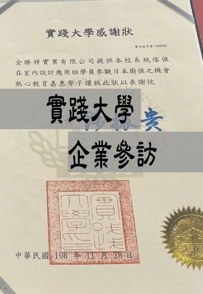 實踐大學 - 室內設計應用班 企業參訪 . 於2019/12/15我司展覽活動當中,特別來到展場參觀,並頒發獎狀以表感謝。