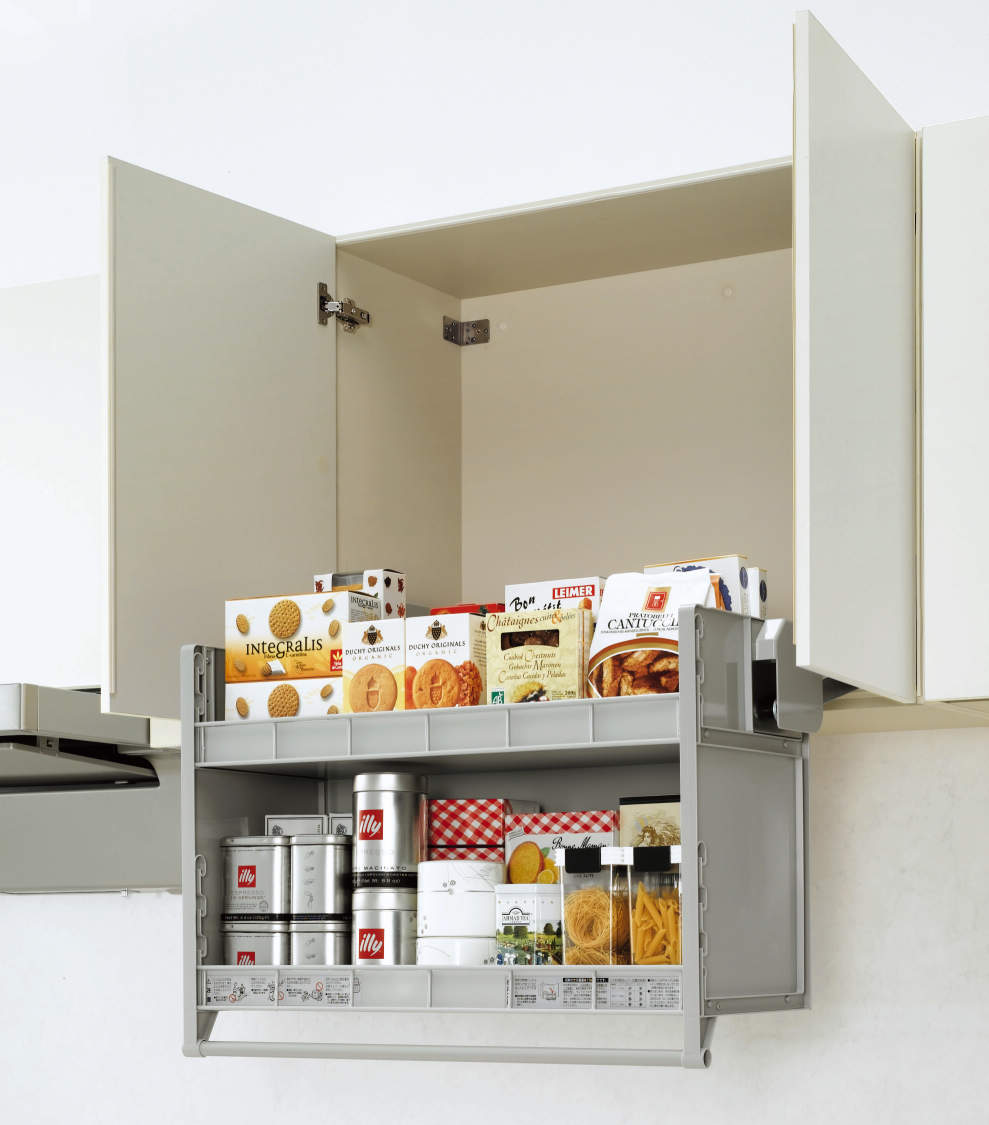 輕輕往下拉即可拿取上櫃收納的物品