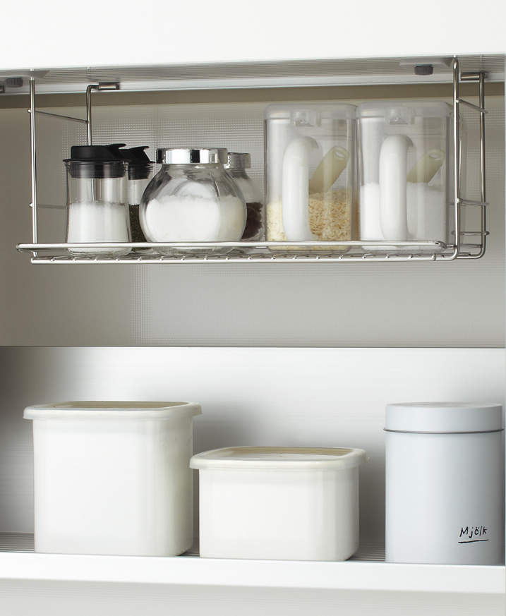 上層為小物收納空間,下層做瀝水自然風乾,或臨時配膳空間。