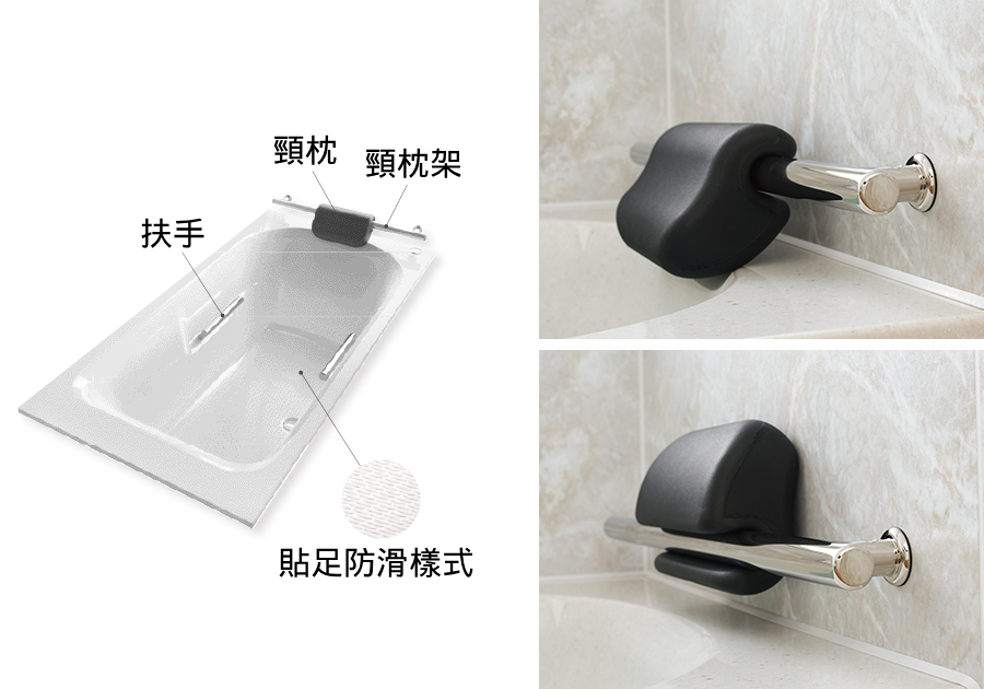 頸枕浴缸 翻轉型頸枕可以提共您兩種舒服的泡澡姿勢。 |