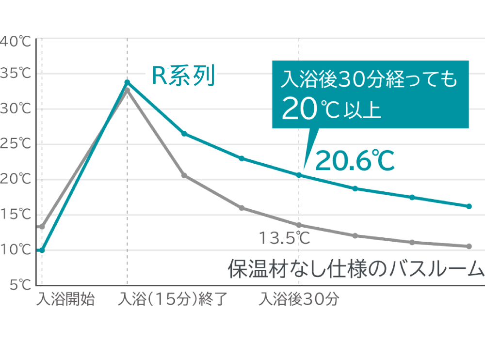 壁板 新開發的牆板,與傳統產品相比,成功縮小了 11 毫米,同時保持了浴室內的高隔熱性能。 |