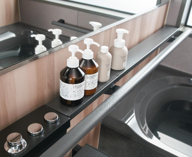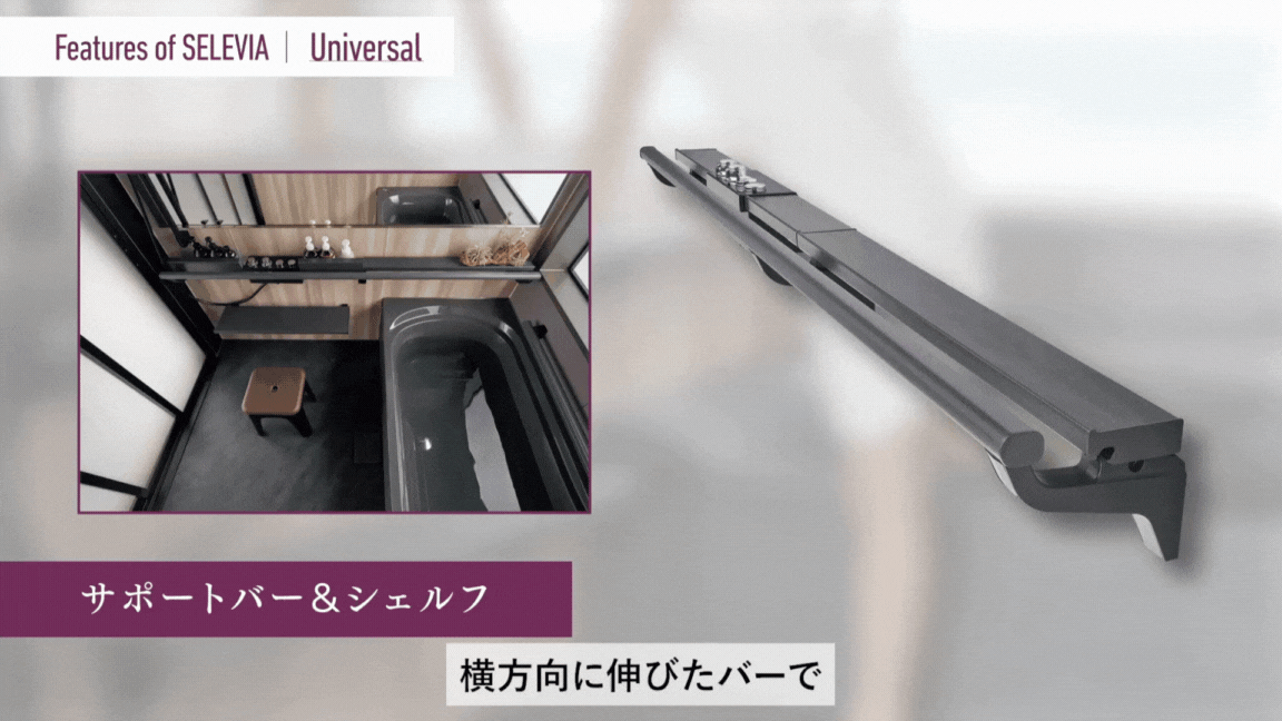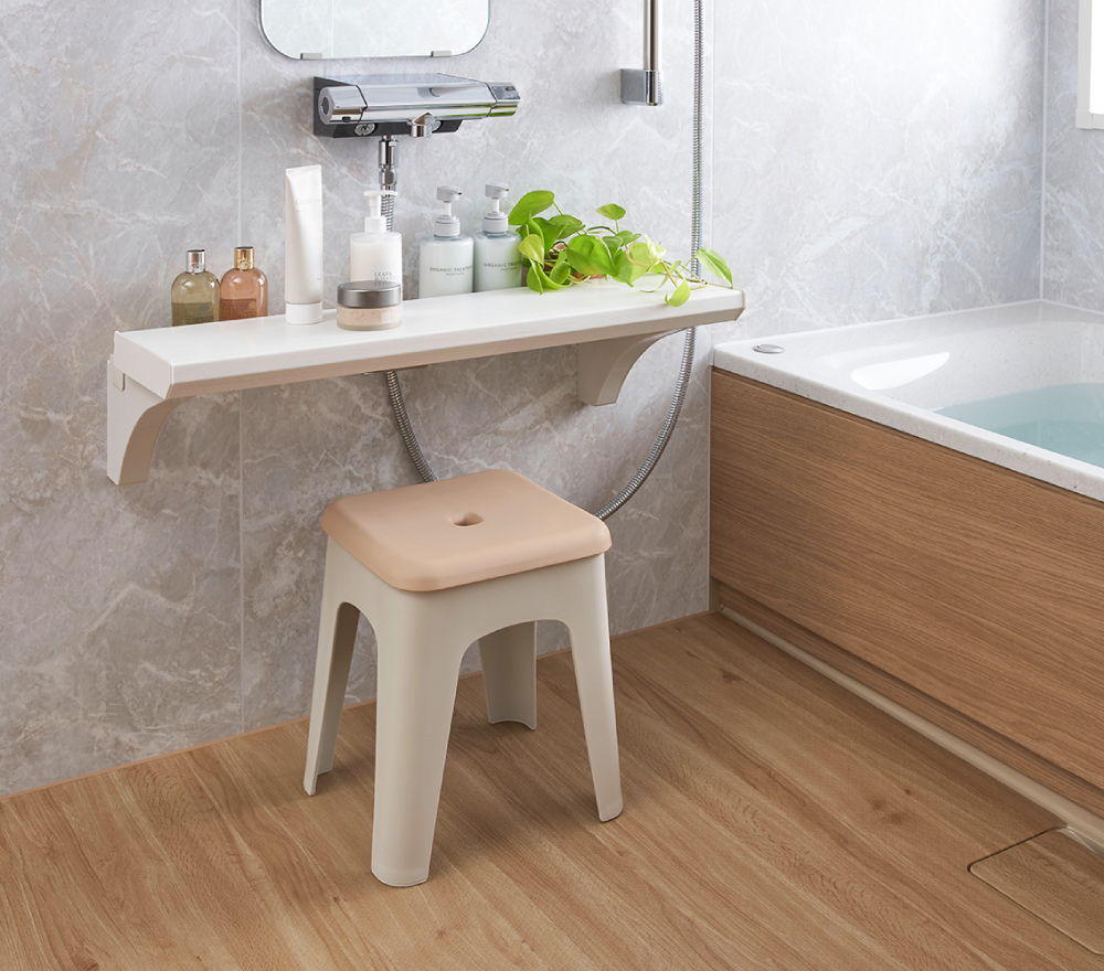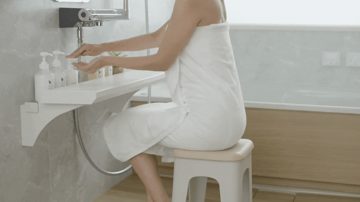 只要輕輕出力就能輕鬆握緊的握把設計讓您在淋浴與浴缸間也能安全移動、並設有瓶瓶罐罐的收納空間,其特點: