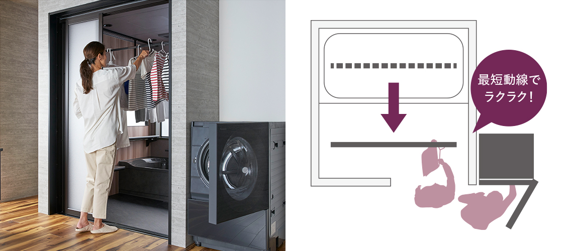 考量到「家事動線」,在晾洗好衣物時能減輕負擔的設計。