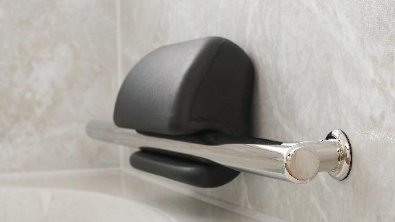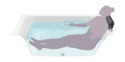 | 可旋轉的頭枕可在兩種位置支撐舒適的沐浴姿勢。 放下頭枕時,頭枕可支撐頭部;豎起頭枕時,頭枕可變化至適當的高度,讓您在露出肩膀的情況下也能舒適地沐浴。 |