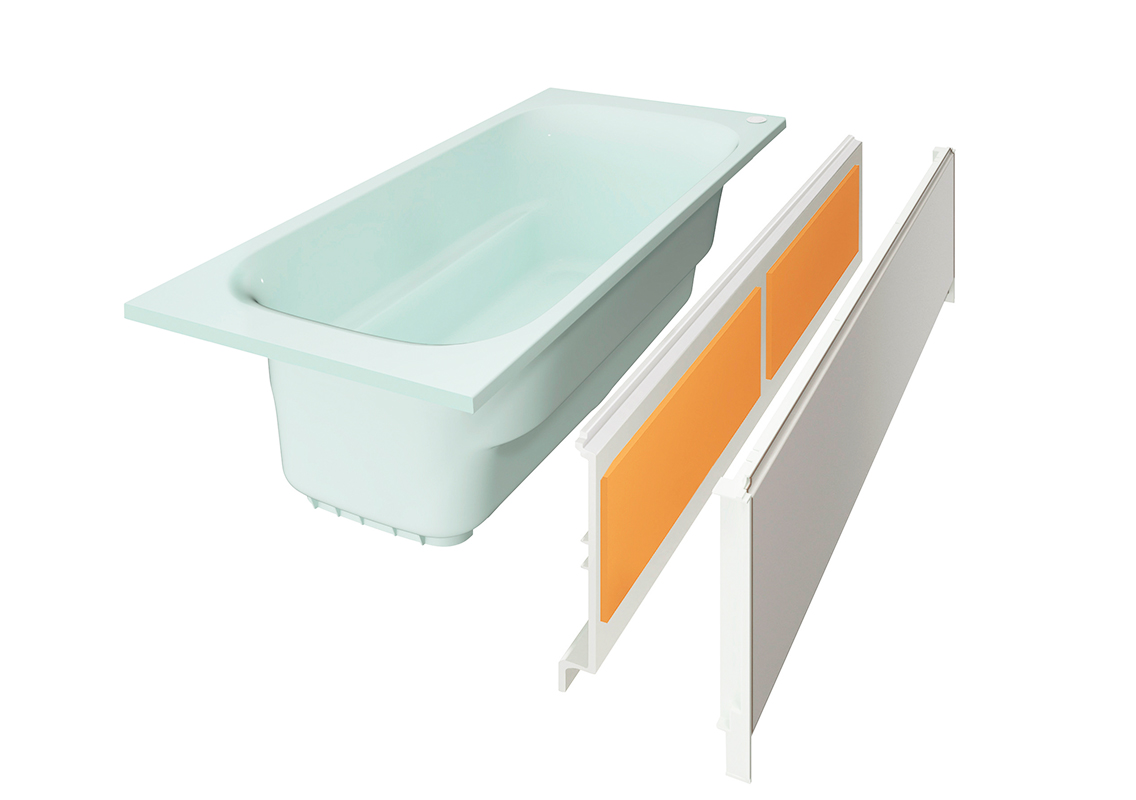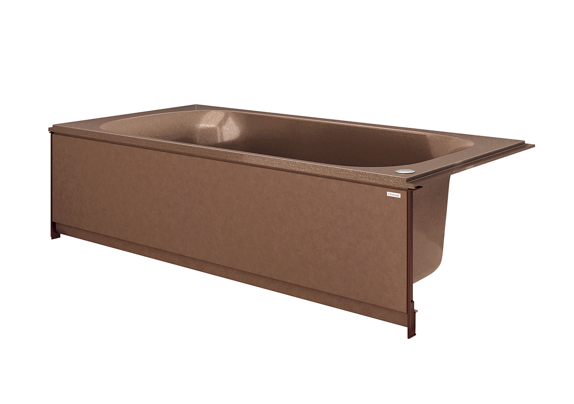 浴缸前的側牆和地板可以與浴室內的牆壁和櫃檯以及相鄰的房間相協調;側牆還配有隔熱材料,以防止冷空氣通過浴缸側的地板進入。