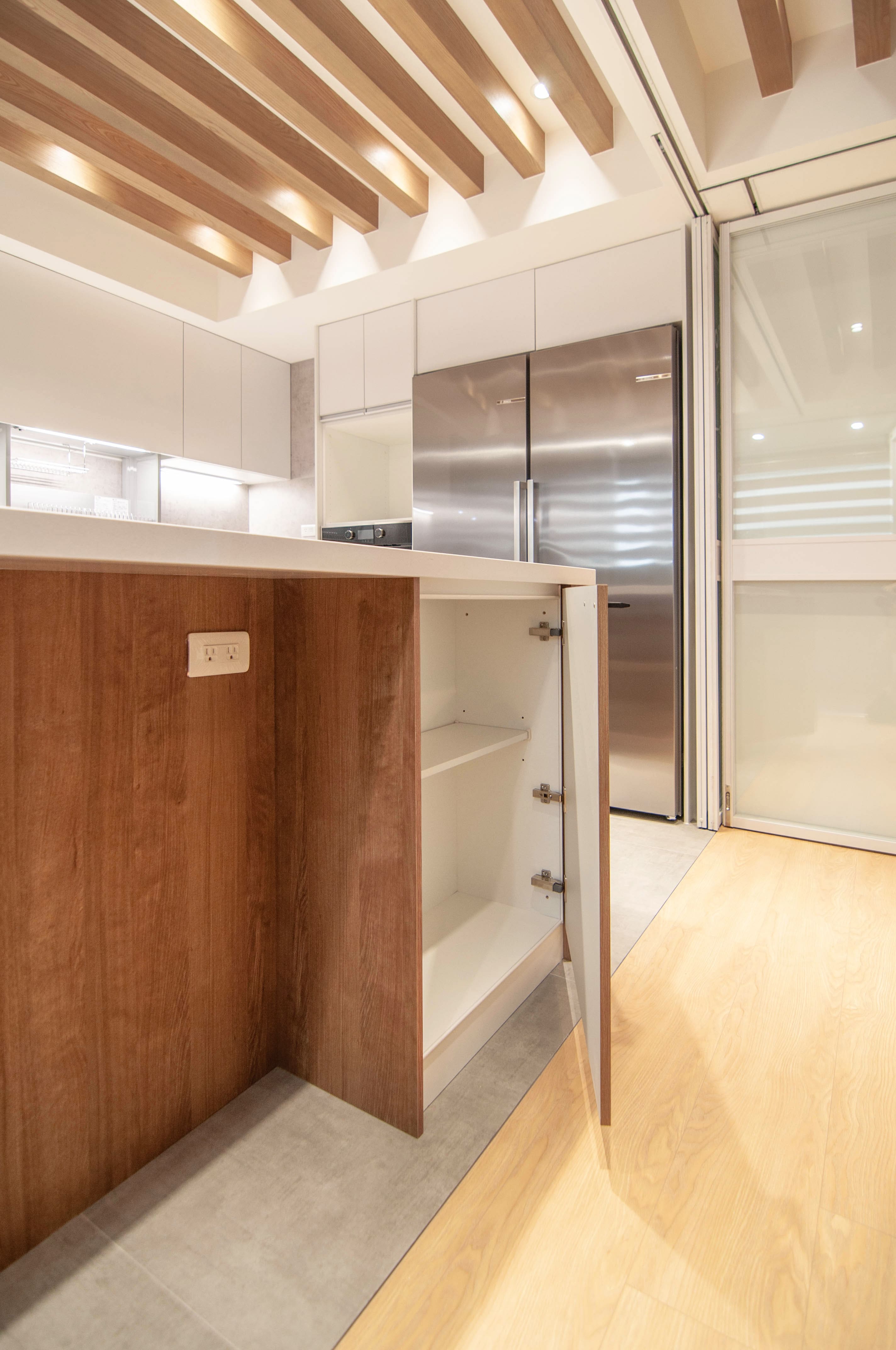 木質色調的溫暖魅力不容忽視。木頭色的門片散發著自然的暖意,與天花板上的木條設計相呼應,不僅增添了整體空間的層次感,更營造出如家般的舒適氛圍。這種搭配彷彿將戶外的自然美景融入室內,帶來平靜與放鬆的感受