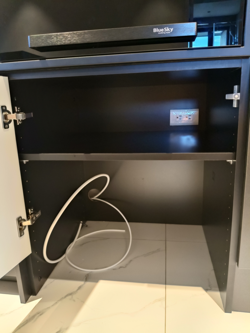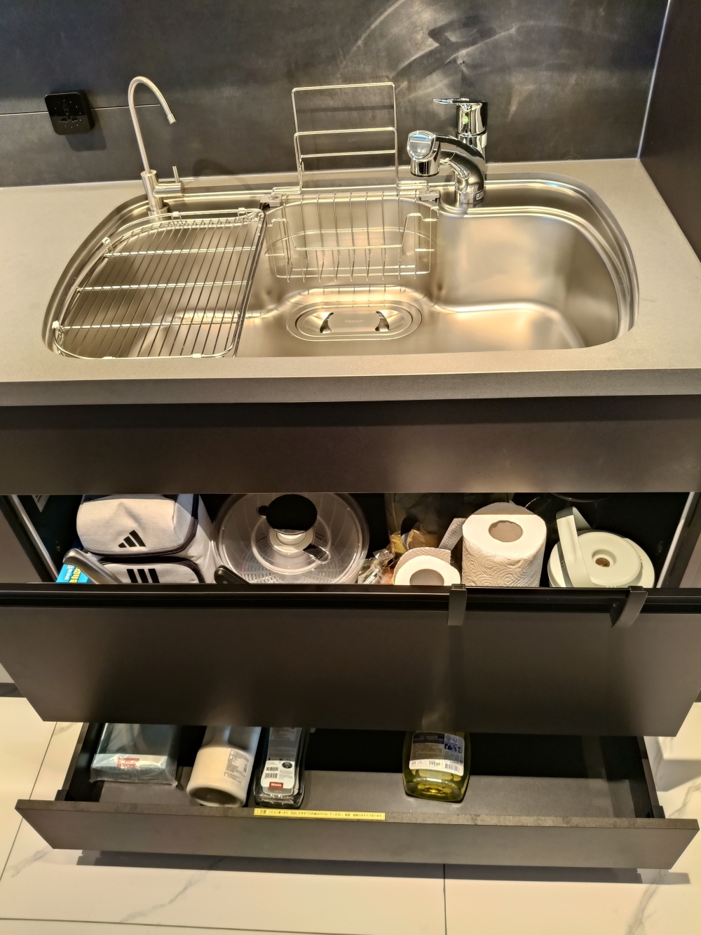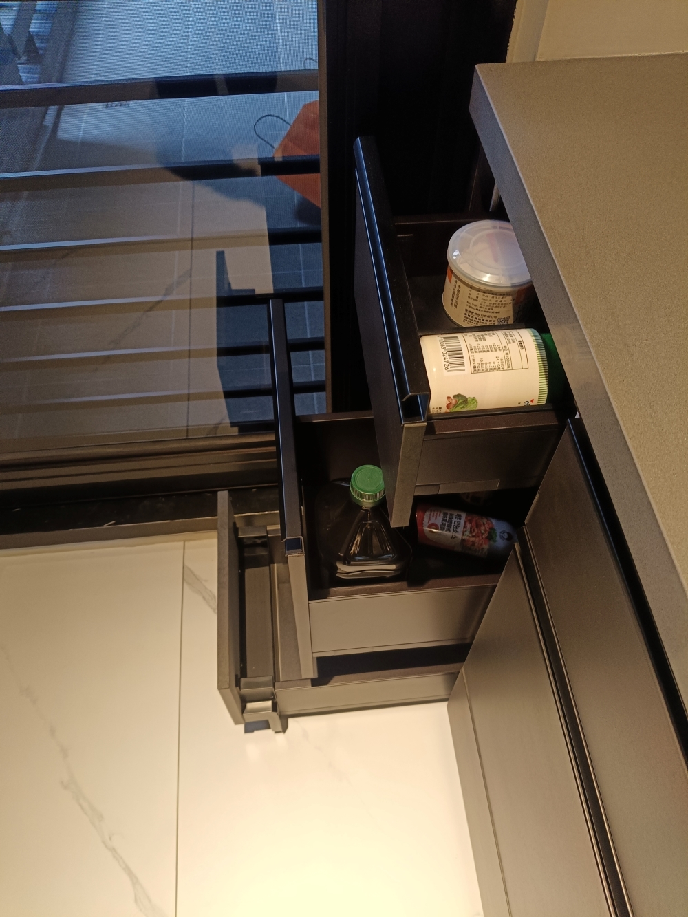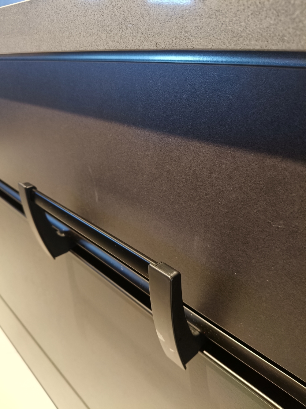 設計發想核心為「和諧」,旨在創造一個充滿質感、且與空間完美融合的廚房;櫃體門片選用 Cleanup CENTRO Class05 CUZ 色系,沉穩中帶有內斂光澤,並搭配U型黑色隱藏把手,簡約俐落的設計賦予櫃體優雅的延伸感,檯面選用具現代感的 愷薩金石2003鈦金灰;整體廚房除了實用機能之外,更是專為屋主一家量身打造的藝術空間。