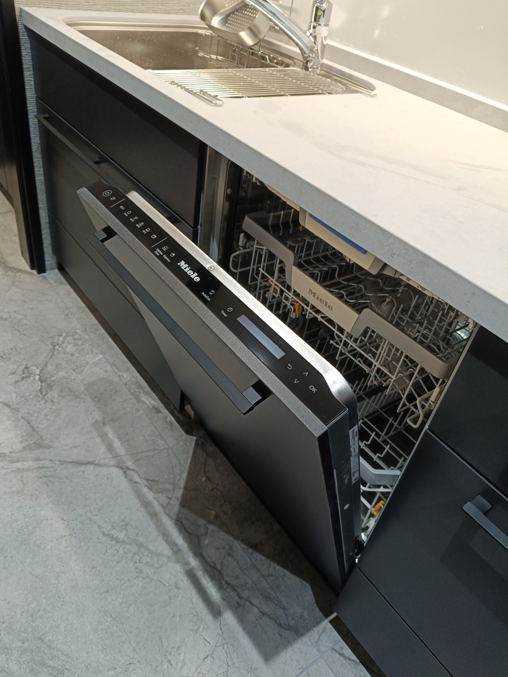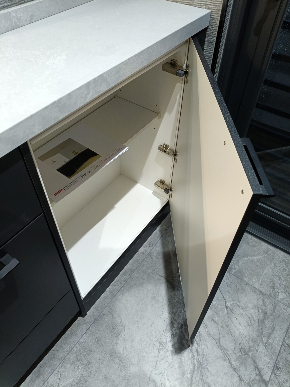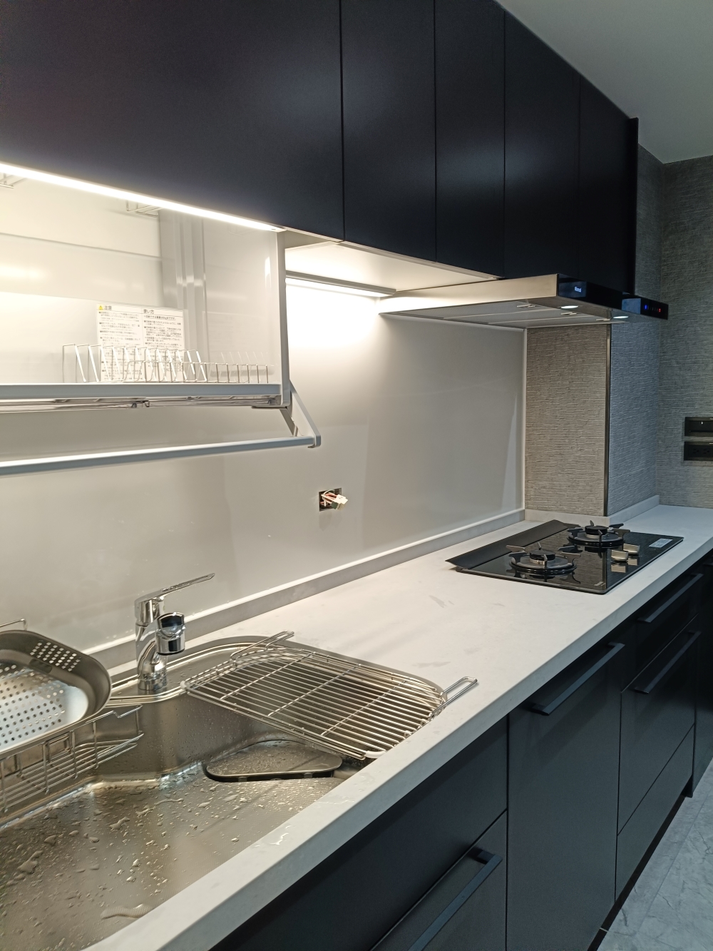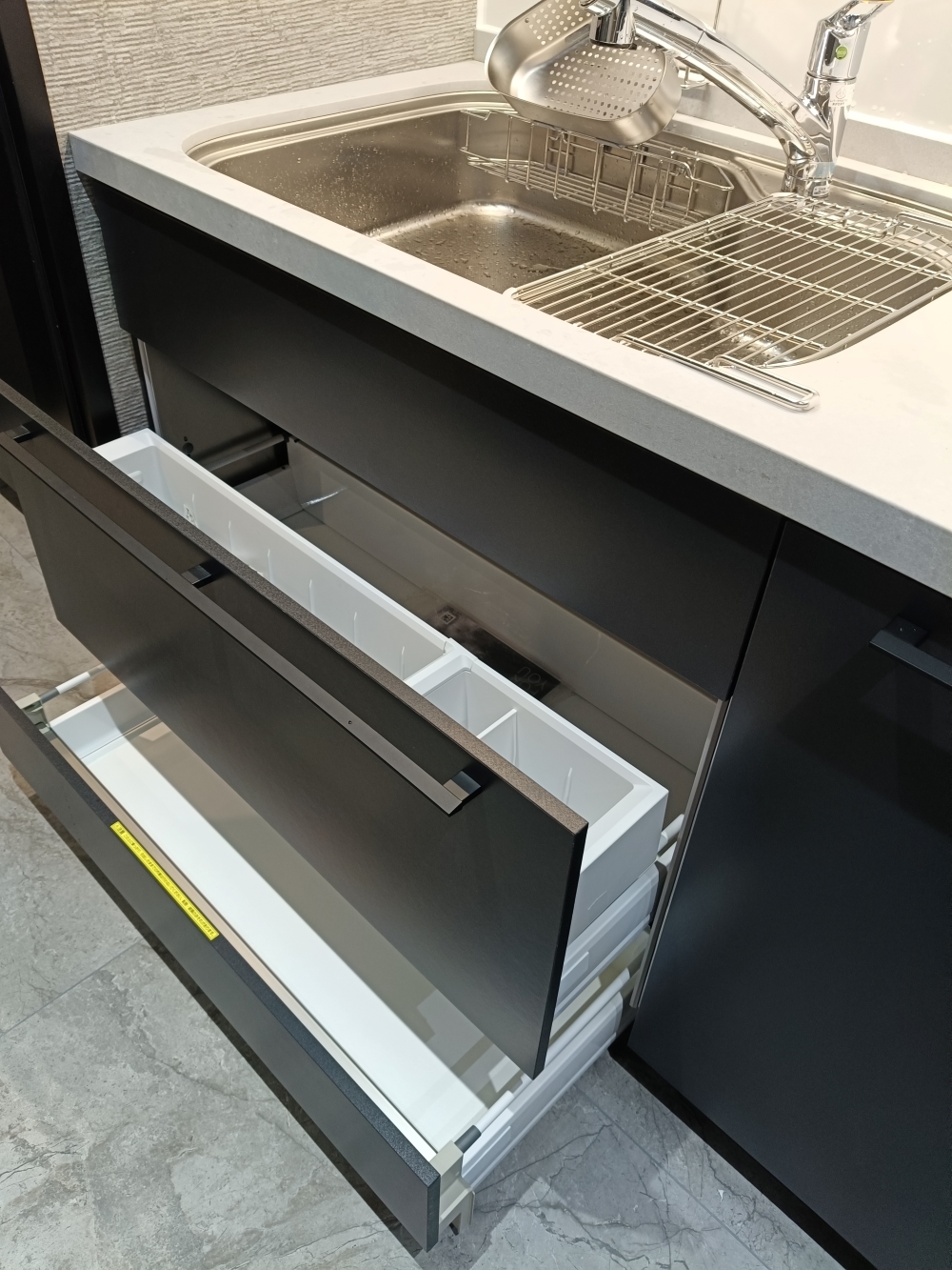 設計師不動牆面讓廚房延伸至客廳,將廚房化為守護幼兒的溫柔視角,中島兼具料理、洗滌與用餐機能,滿足年輕媽媽邊烹飪邊照護幼兒的需求;內廚規劃為油煙區;Cleanup STEDIA Class05 CAZ 上下櫃、G黑色長把手與SA導流水槽,俐落設計與高效收納,讓小空間也能展現開闊質感,點亮專屬於母子間的幸福溫度。